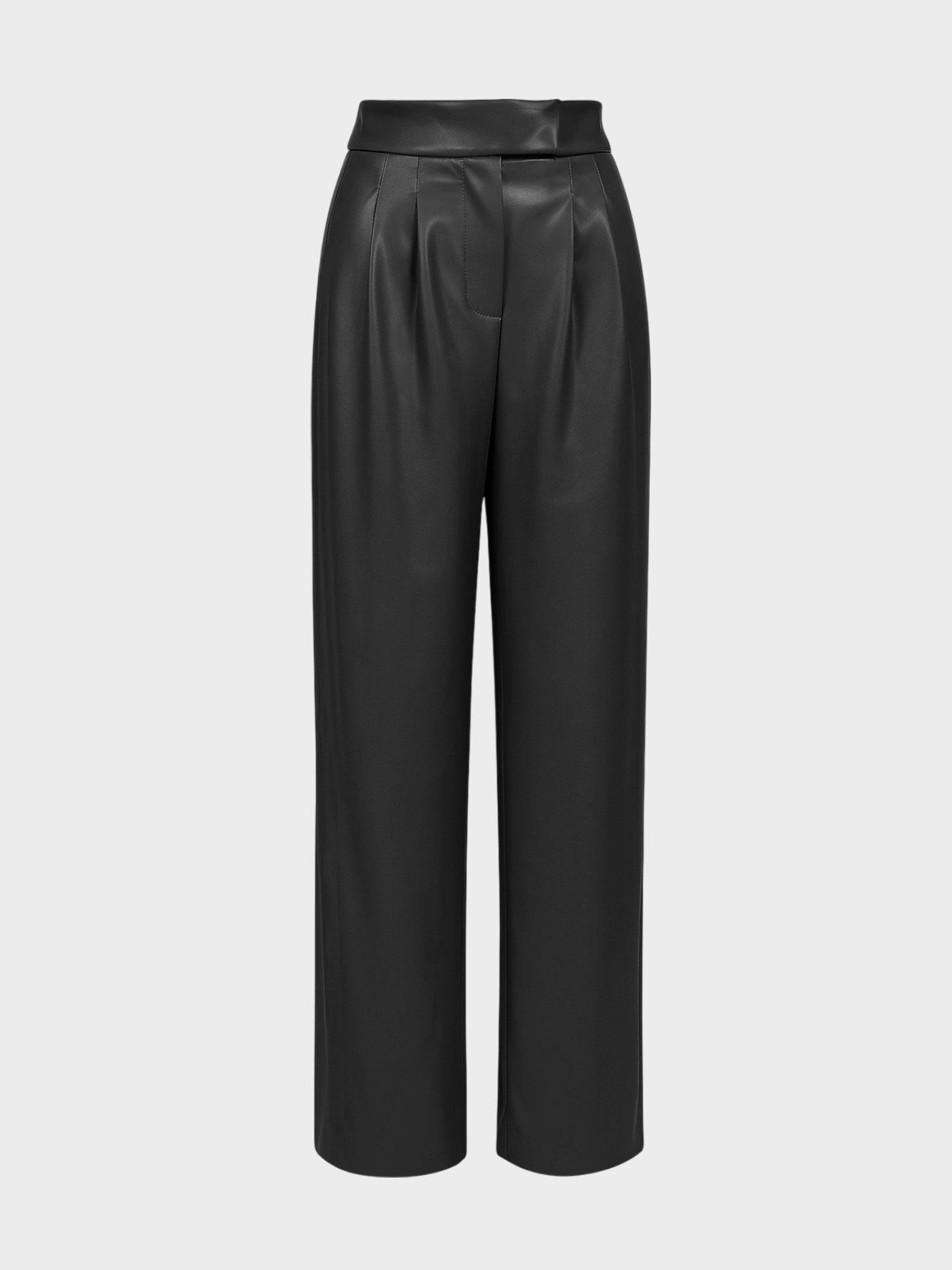 Güçlü formu ve dikkat çeken dokusuyla öne çıkan bu vegan deri pantolon, modern şehir stiline cesur bir duruş kazandırır. Yüksek bel tasarımı vücut formunu dengelerken, nervür dikişler görünümü netleştirir. Bol paça ve maxi boy kesimi sayesinde hem rahat hem iddialı bir siluet sunar. Günlük kombinlerde sneaker’larla, akşam stillerinde topuklu ayakkabılarla kolayca tamamlanabilir.